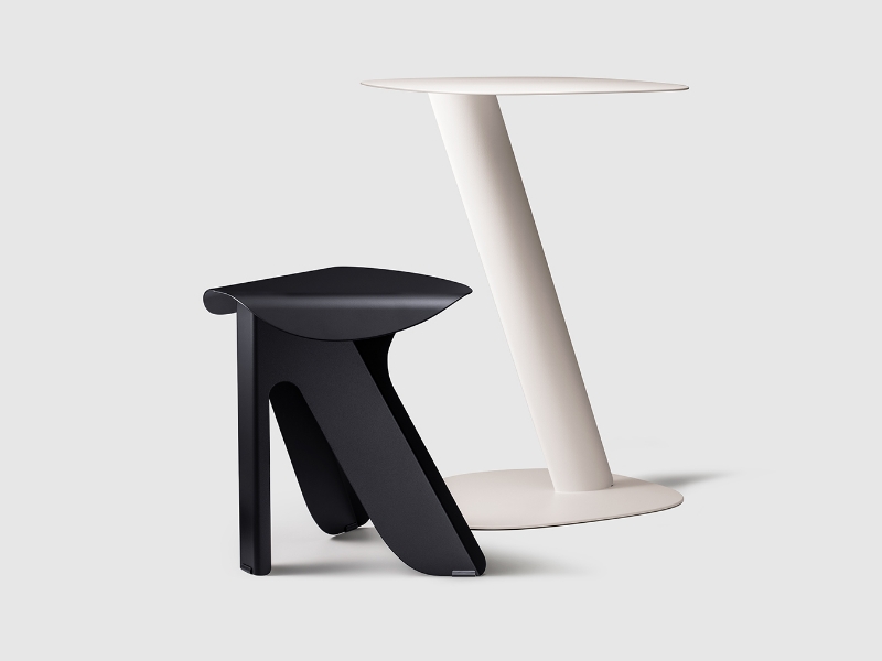 紙飛行機をモチーフに、空を軽やかに舞うような造形美と、耐久性と繊細さのバランスを追求した、彼らのデザイン哲学を体現するアルミ製家具コレクション。金属が持つ冷たい印象を払拭し、温かみのある佇まいを目指すことで、素材と技術の融合による新たな家具のあり方を提案しています。