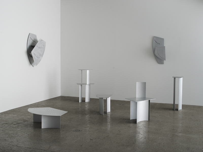 アルミニウムを素材に、レーザーカットや曲げ、溶接といった板金加工の痕跡を意図的に残し、それらをデザインに組み込むことで、製造のプロセスを可視化した家具コレクション。切断や溶接、研磨といった作業の痕跡に着目し、製造過程そのものがデザインの主題となっています。
